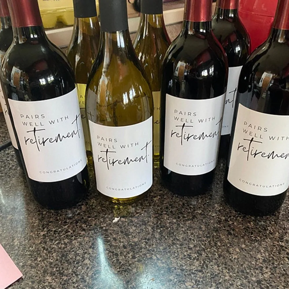 Custom Text Retirement Wine Stickers, Wine Bottle Label, Personalized Retirement Gift Idea, Gift for Her or Him, Wine Label
