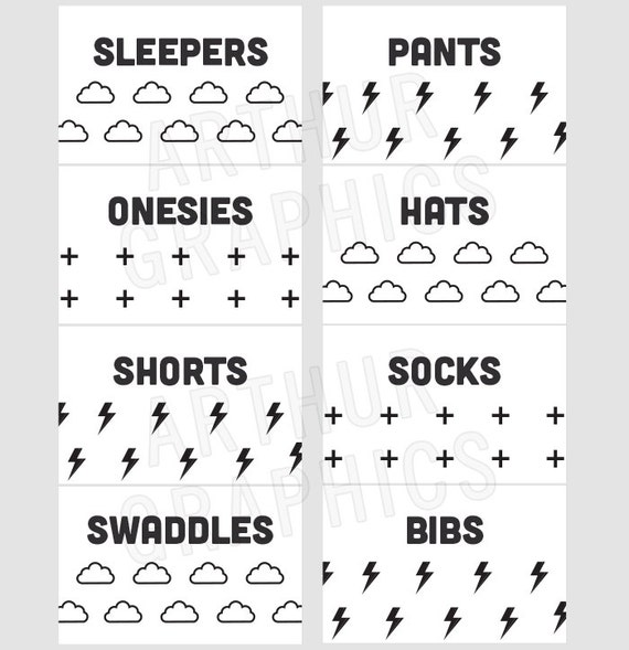 10 Nursery Dresser Organization Ideas and Printable Drawer Labels ... Printable Watercolor Baby Drawer Labels for Nursery With this purchase you'll receive 8.5 x 11 inch printable PDF INSTANT DOWNLOAD of the drawer labels. NO PHYSICAL PRODUCT WILL BE MAILED TO YOU. HOW IT WORKS: 1. Checkout + download the file 2. Print on your home printer or at a local copy/print shop 3. Cut along outside lines 4.