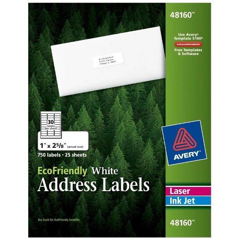 Avery 5160 Address Labels, 30 Labels Per Sheet | Quill.com Avery Easy Peel Inkjet Address Labels, 1" x 2 5/8", White, 750 Labels Per Pack (8160) 4.7 (3090) $10.49 Pack. When you buy 10 + Hide Details - Qty Add to Cart. Avery TrueBlock Laser Shipping Labels, Sure Feed Technology, 2" x 4", White, 1000 Labels Per Pack (5 ... Compatible with laser printers for efficient, hassle-free printing