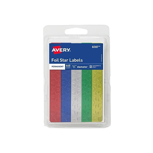 Avery® Foil Star Labels, 1/2", Assorted Colors, Non-Printable, 715 Per Pack, 6-Pack, 4,290 Star Stickers Total (46751)