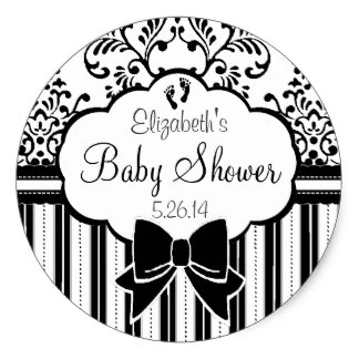 3.8cm Black and White Damask and Stripes Baby Shower Classic Round Sticker Label Printing Personalised Product Labels